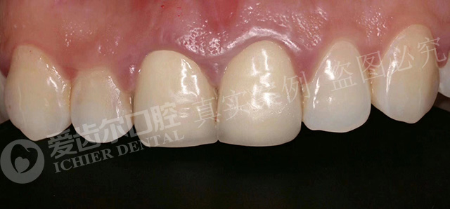 病例情况:顾客因上门牙牙缝过大影响面部美观,在别家进行了烤瓷牙修复。修复之后,顾客的上门牙牙龈出现了红肿和疼痛的情况,牙齿对冷热的刺激也特别敏感,为了不让这种情况给自己的生活和工作造成严重的影响,顾客经过多方的对比和慎重选择,来到了爱齿尔口腔就诊。